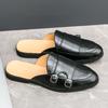 Fashion Summer Luxury Brand Mens Shoes Casual Half Drag Loafers Leather Slippers Breathable Slip On Lazy Driving Shoes for Men Moccasins