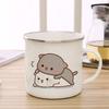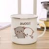 Peach and Goma Cat Enamel Coffee Tea Cup Cute Animal Breakfast Dessert Milk Water Cup Couple Gift
