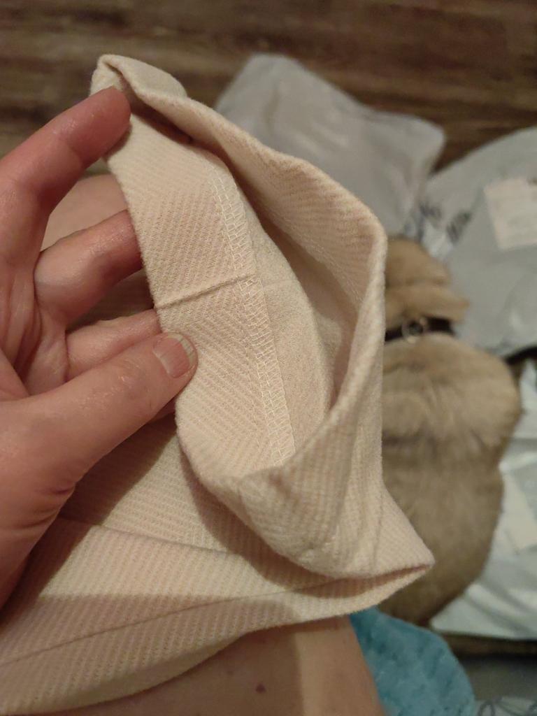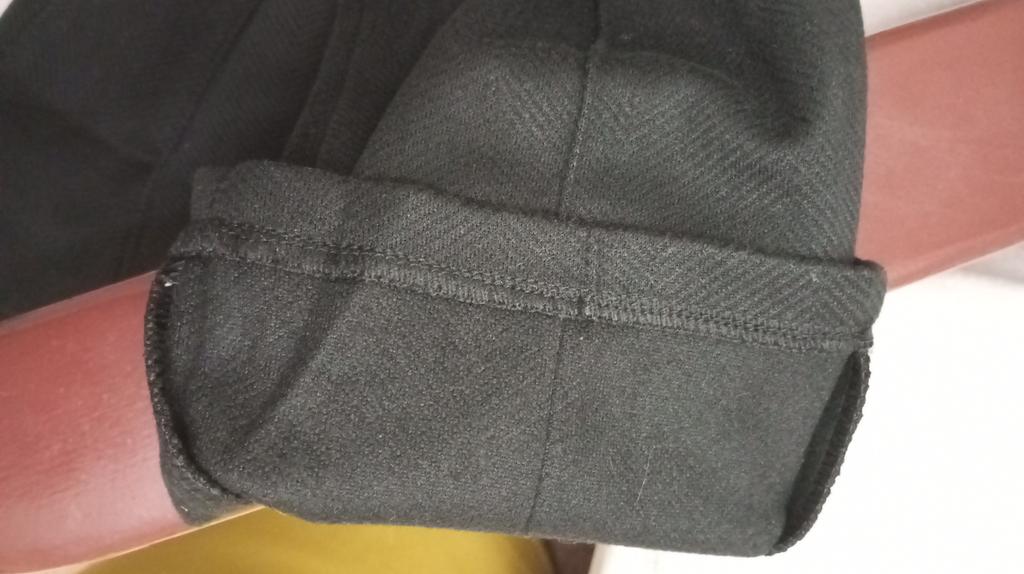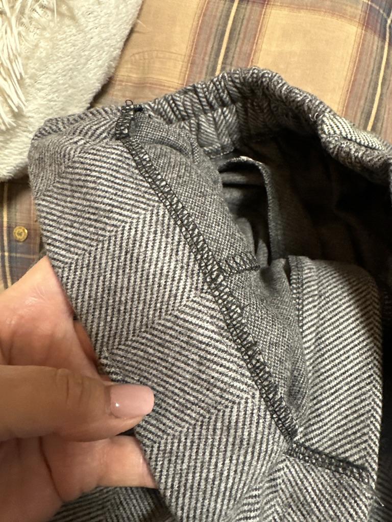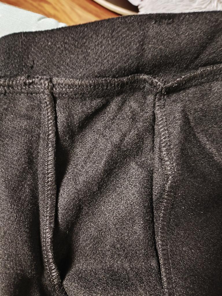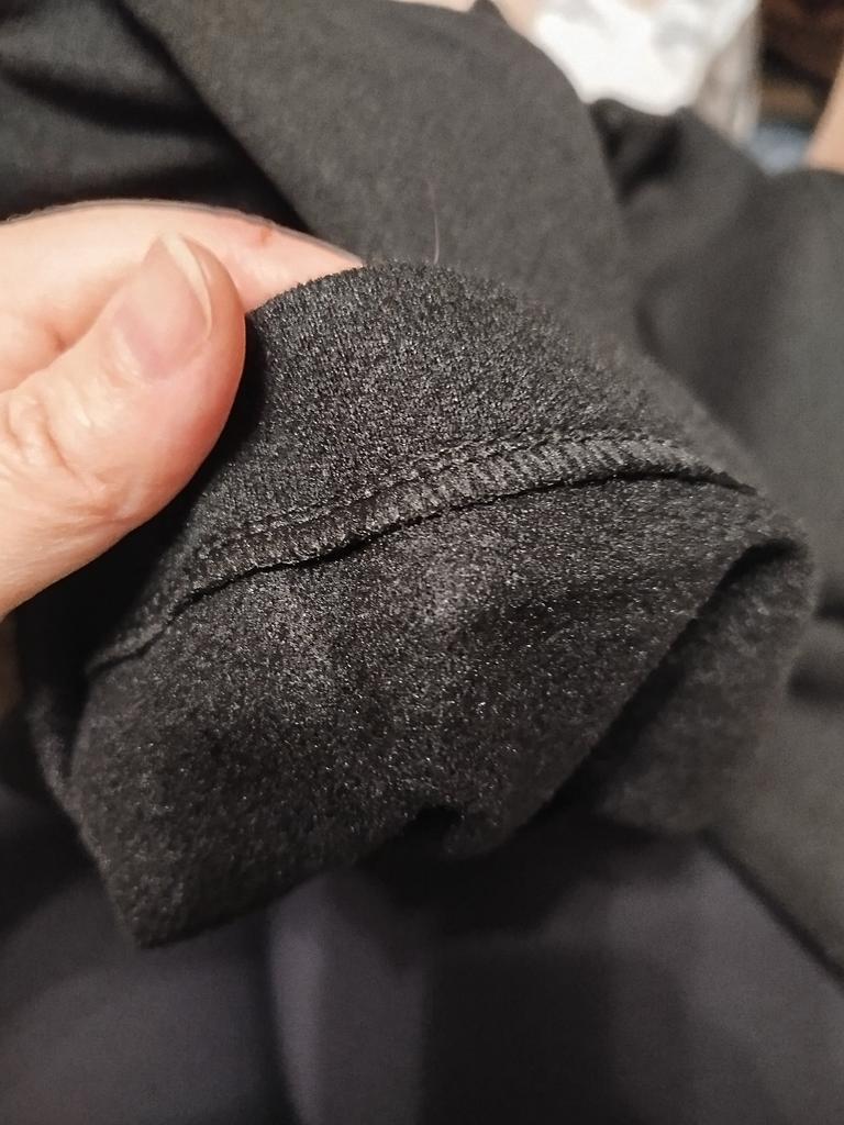 The trousers are sewn neatly. Very warm. The fabric is a bit loose, and on the black color, hairs from my white kitty stick very easily.