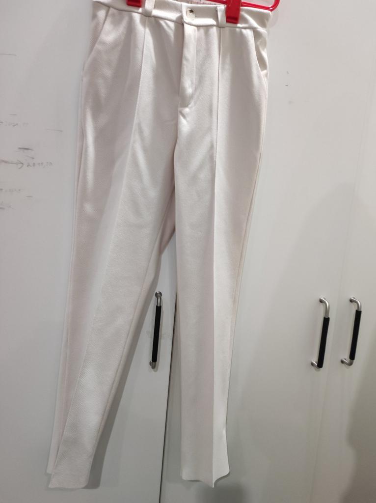 The trousers are very short, the fabric and style are quite decent.