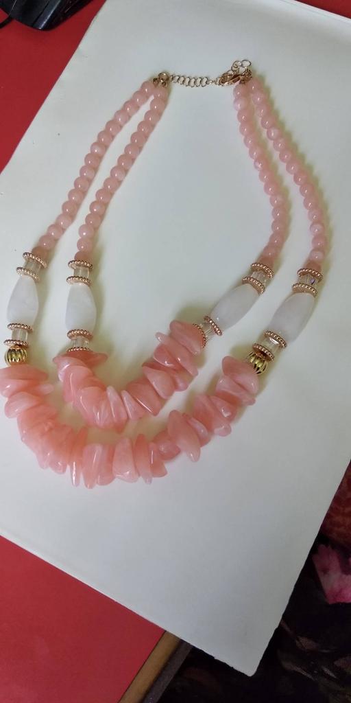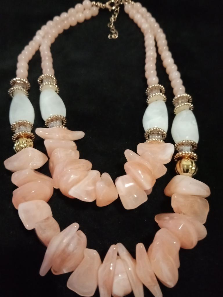 The beads are exceptionally good. Stylish design. They look striking on the neck. A rare delicate pink color.