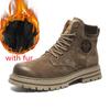 FashionMen Motorcycle Leather Boots Lace Up British Style High Top Shoes Walking Casual Platform Plush Warm Winter Boots Bota Masculina