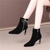 2024 Brand Shoes for Women Zipper Winter Women's Boots Pointed Toe Flock Plush Butterfly-knot Sequins High Heels Fashion Boots