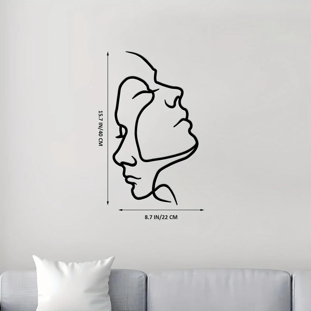 Figurative Couple Headshot Wall Decor - Abstract Line Silhouette Metal Iron Art | Stylish Sticker Mural and Wall Decorations