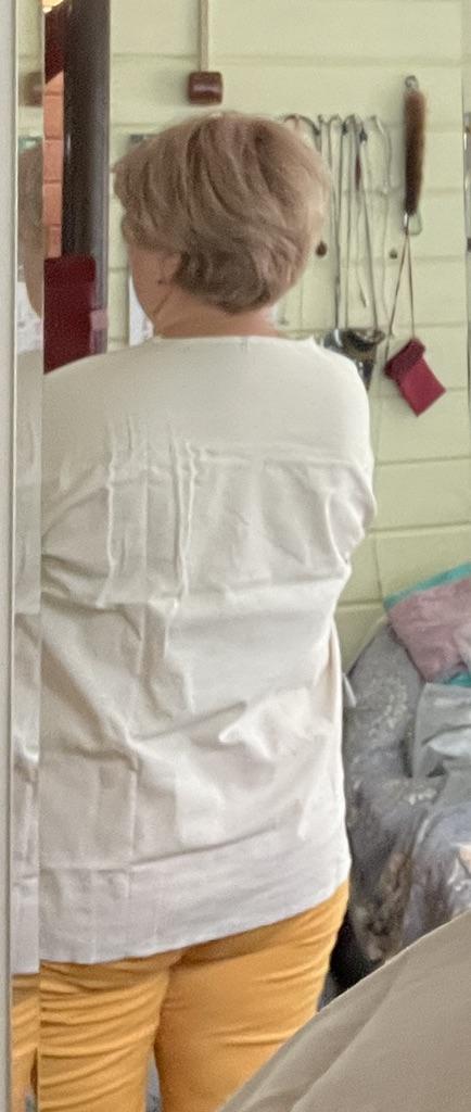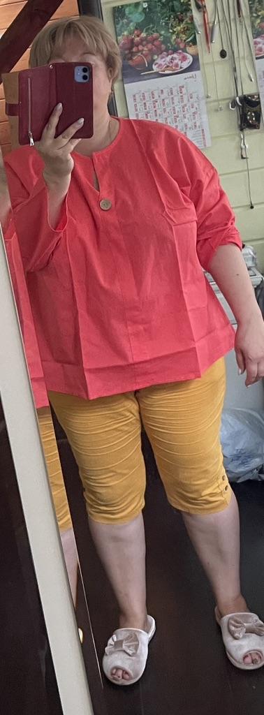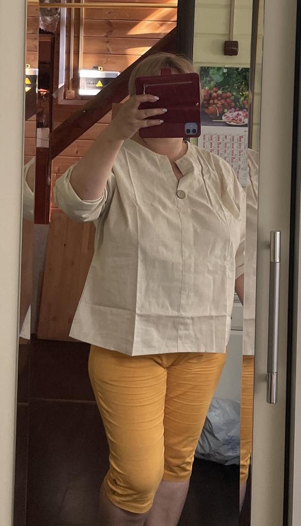 Elegant summer blouse. I like the color and how it fits the figure.