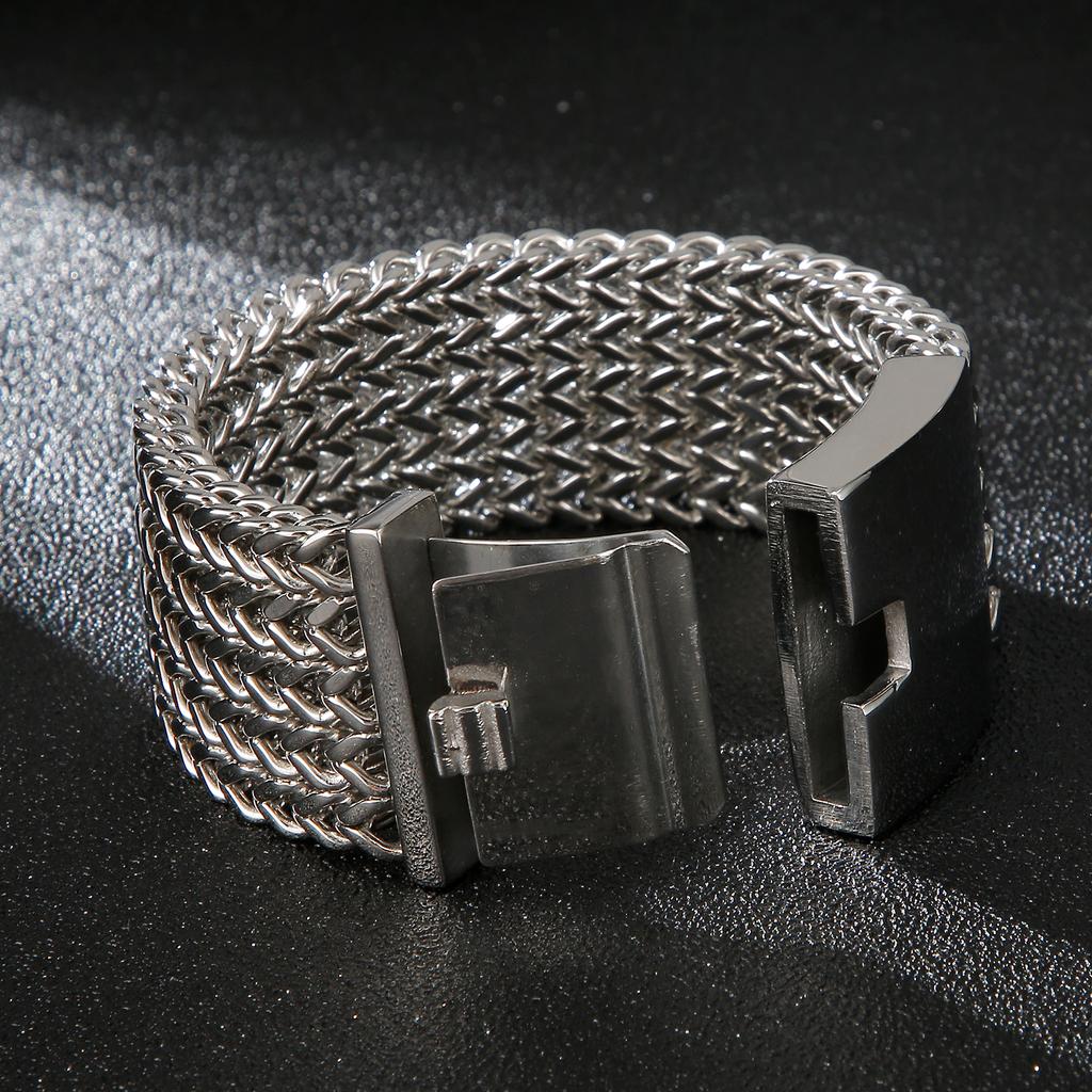 Wide Mesh Chain Bracelet for Men Shiny Rock Cool Boy Wristband Heavy Metal Jewelry Gift