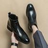 Fashion Brown Chelsea Boots Men Business Black Round Toe Zipper Slip-On Solid Men's Formal Boots Size 38-46