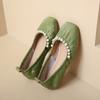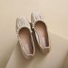 Fashion Women's Fashion Flat Shoes Autumn New Square Head Shallow Mouth Beaded Light Soft Sole Non-slip Single Shoes