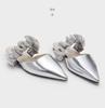 Fashion Crystal Ruffles Band Slippers Woman Trendy 2024 Sandals Flats Heels Pointed Toe Mules Ladies Shoes Cozy Slides Silver Flipflops