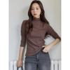 Autumn and Winter Women's Solid Color Semi-high Collar Double-sided Sanding Warm Base Shirt High Elastic Inner Slim Look All-match Base Shirt
