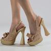 Fashion New Bling Sequined Elastic Band Back Strap Thick High Heels Women Sandals Sexy Peep Toe Platform Chunky Bowknot Party Shoes