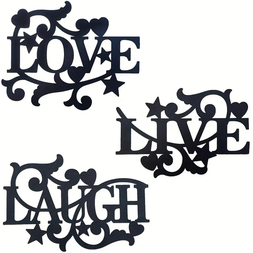 3pcs/Set Metal Bless Wall Decor "Love" "Live" "Laugh" Matte Black Silhouette Wall Hanging Stylish Living Room