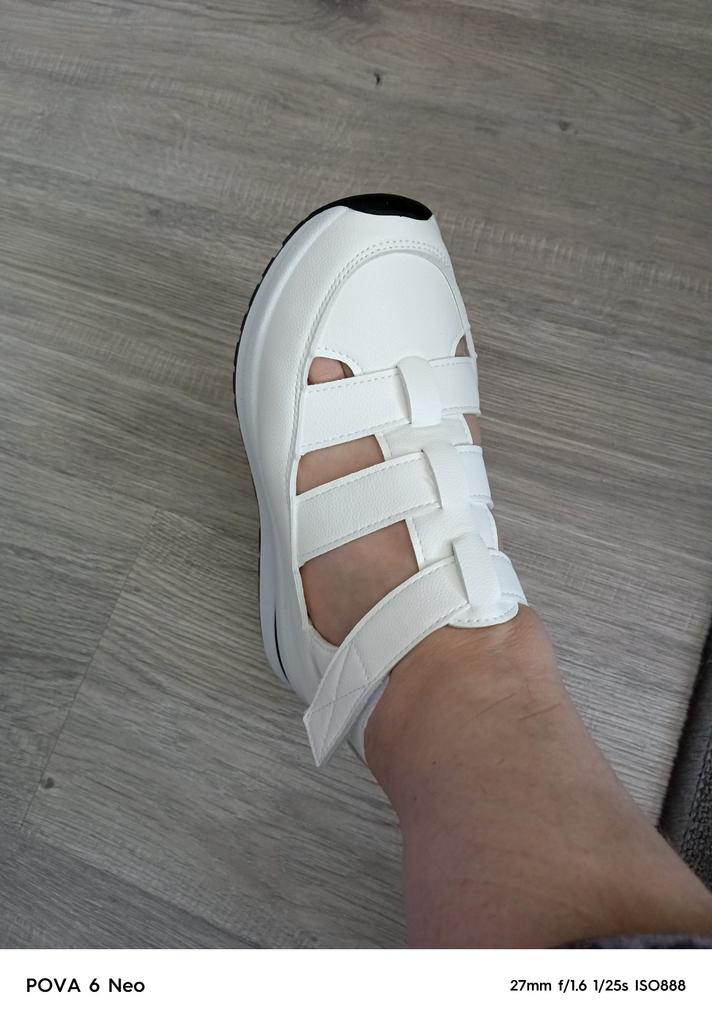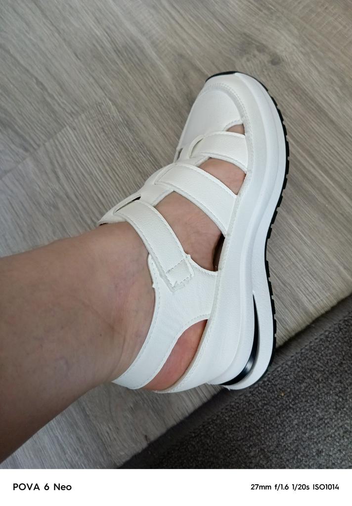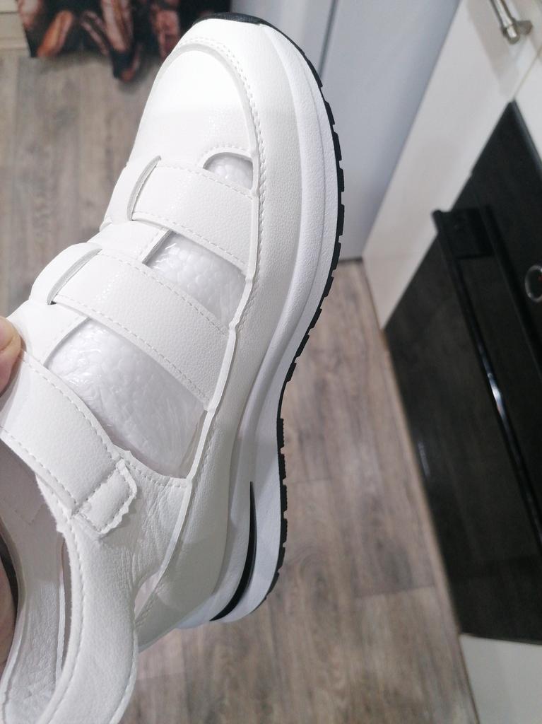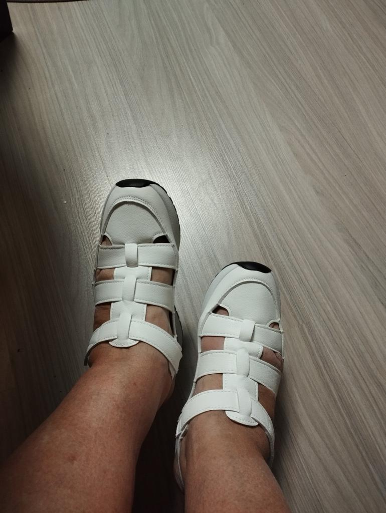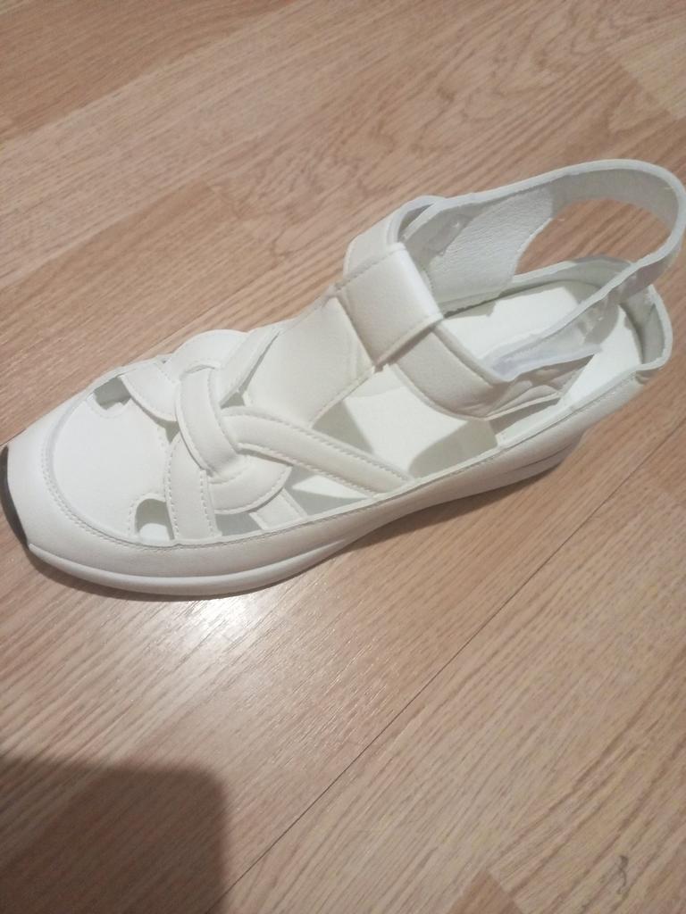 Size 41 fits tightly on 40, the back constantly bends inward, the right shoe (sounds better than a sandal), the straps are not made in the center, they shift to the left, an unpleasant smell