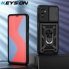 KEYSION Shockproof Case for Samsung A16 5G Silicone+PC Slide Camera Lens Protection Ring Stand Phone Cover for Galaxy A16 4G 5G