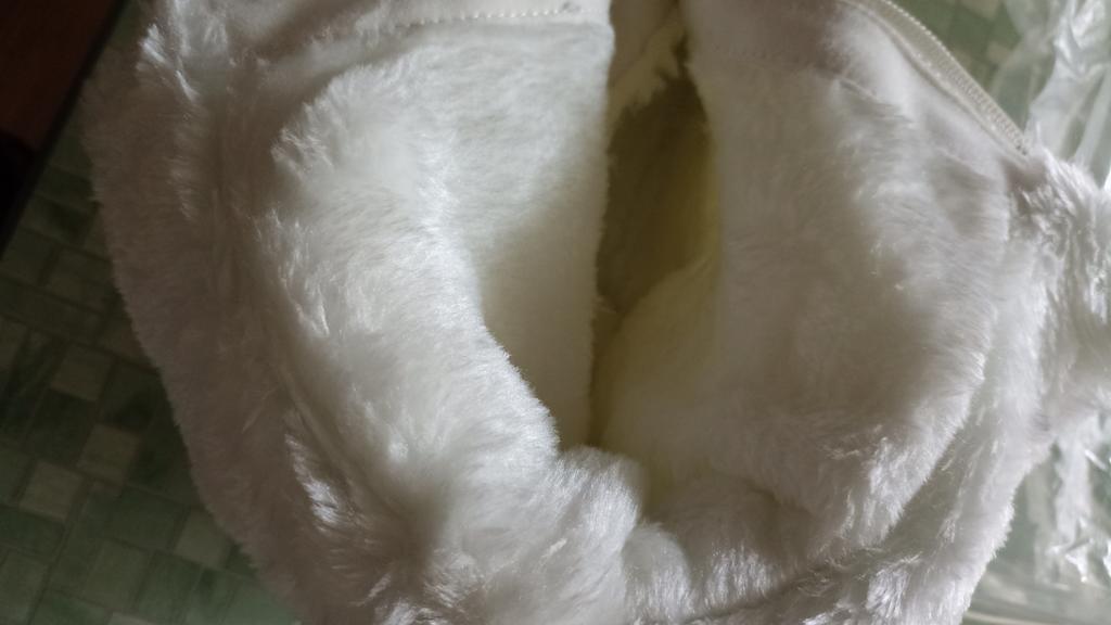 Very good boots, white, artificial fur inside, warm, comfortable. I have a high instep, everything fit perfectly. I ordered size 40 for 39. You can wear them with warm socks. The boots are super!