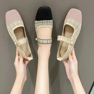 Fashion Korean Style Knitted Mary Jane Shoes for Women Comfort Breathable Women Shoes Square Toe Flat Sole Casual Shoes Zapatos De Mujer