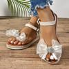 Fashion 2024 Hot Sale Shoes Female Open Toe Women's Sandals Summer Rhinestones Bow Tie Buckle Solid Flat Casual Beach Large Size Sandals