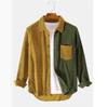 Men's Spring and Autumn Long-sleeved Color Collision Lapel Corduroy Shirt Youth Fresh Casual Comfortable Tops