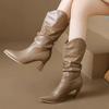 Trend 2024 Women's Half High Boots Retro Middle Heel Designer Luxury Winter Ladies Mid Calf Shoes Novelty Quality Waterproof New