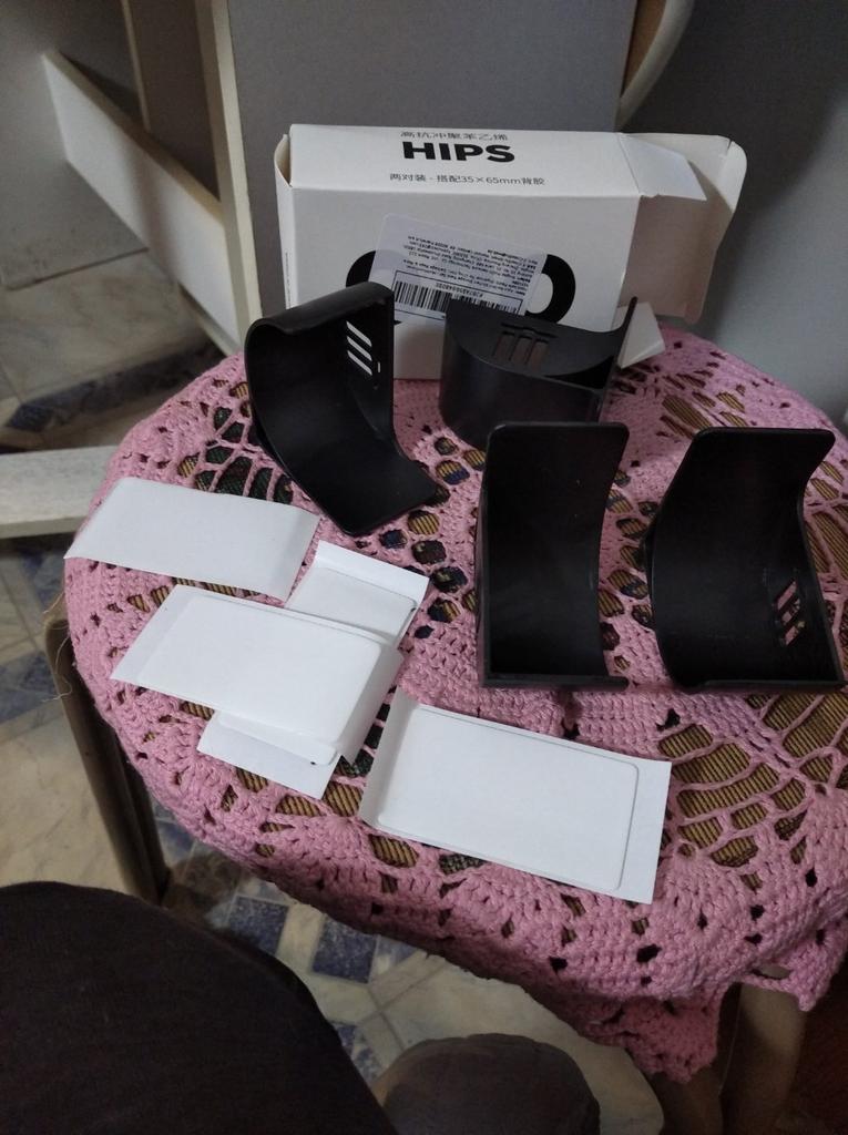 The mount arrived whole, 4 pcs, packaged in a box and a bag, I will use it for storing rolls of foil, food wrap and others.