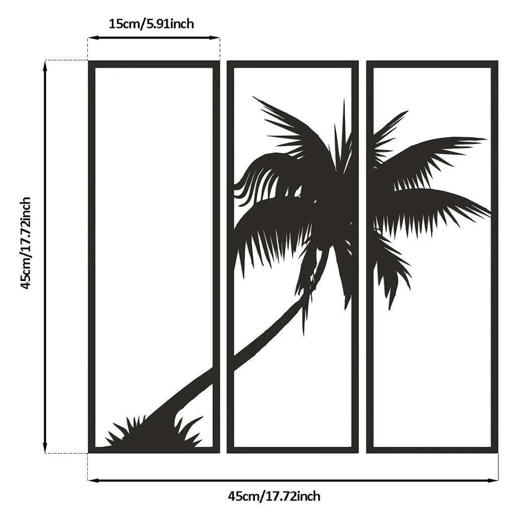 3 Pcs Metal Palm Tree Wall Art – Iron Tree Sign. Stylish Metal Home Decor. Interior Decoration. Elegant Wall Hanging Decor.