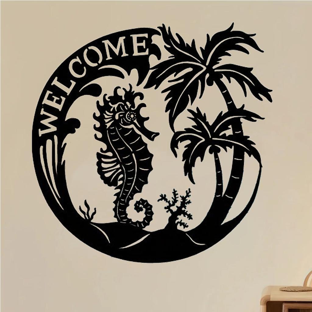 Coastal Welcome Sign Sea Life Pattern Beach Theme Indoor Decoration Living Room Mural Sea Turtle Accent