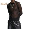 This versatile top is a must-have for your wardrobe. Whether you're dressing up for a special occasion or keeping it casual, this top has you covered. Pair it with suit pants, overalls, jeans, or sports pants for a stylish look. The round neck and long sleeves add a touch of sophistication, while the black see-through effect gives it a modern edge.