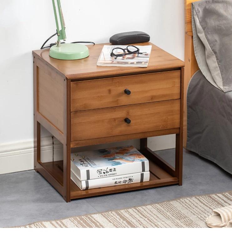 Bedside Table Solid Wood Simple Bedside Cabinet Living Room Removable Sofa Side Few Bedrooms Storage Drawer Small Locker Bamboo