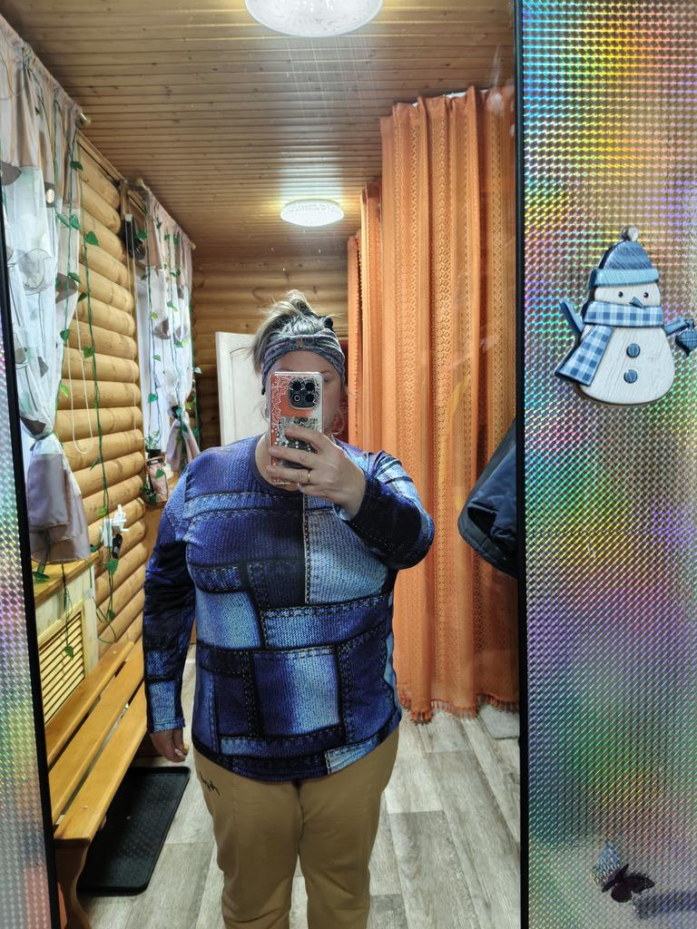 In the photo, the blouse is fitted, but in reality, it is straight and shorter, size M fit.
