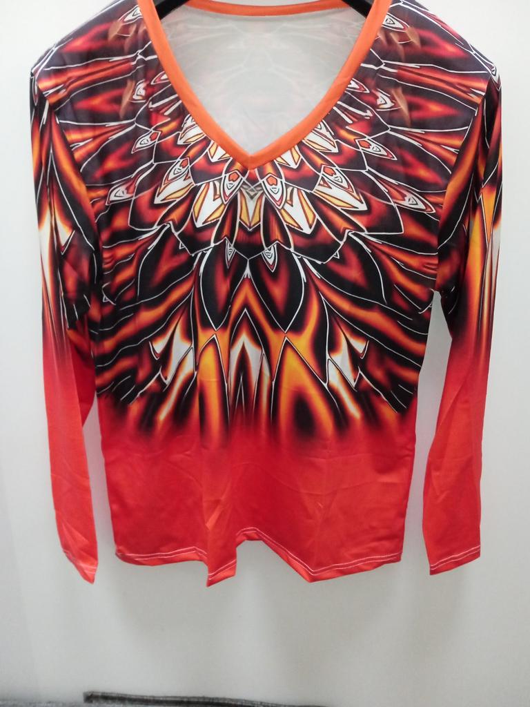 Does not match the description. The t-shirt is just straight and quite short. The material, color, and sewing quality are not bad