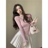 Pure To Irregular Fringe Careful Machine Leakage Collarbone Long Sleeve Bottom Knit Women Unique Chic Small Top