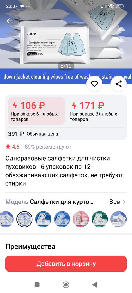 The product left much to be desired. I bought it to clean jackets. The wipes are small, it is inconvenient to clean, there are few wipes in the package, and they clean so-so, not very well. Stains remained. I do not recommend buying