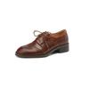 2024 New Vintage Women Pumps Spring Summer Round Toe Thick Heels Mature Shoes Woman Genuine Leather Lace-Up Basic Office Lady