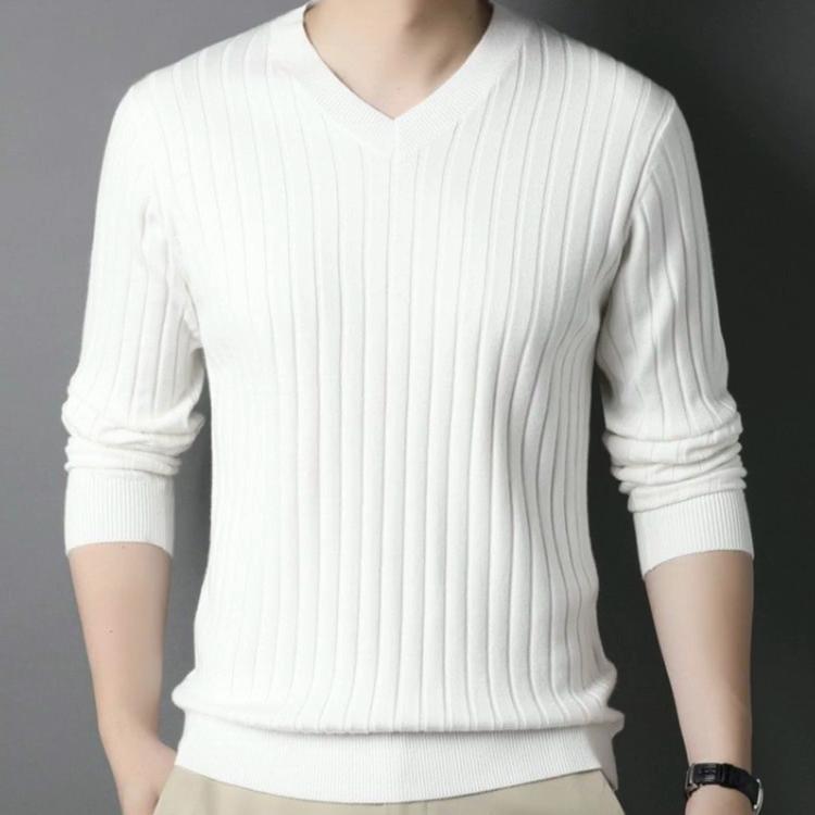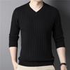 Korean Trend Fashion Autumn Winter Sweaters Men Solid V-Neck Screw Thread Smart Casual Long Sleeve Slim Pullovers Knitted Tops