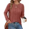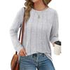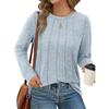 Autumn Winter Long Sleeved Top with Round Neck Pleated Knit Solid Color Loose Fitting Women's T-shirt