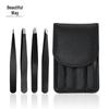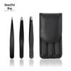 Stainless Steel Eyebrow Tweezer 1.5mm Thick, Black/Pink, Precision Slant Tip with Leather Case.