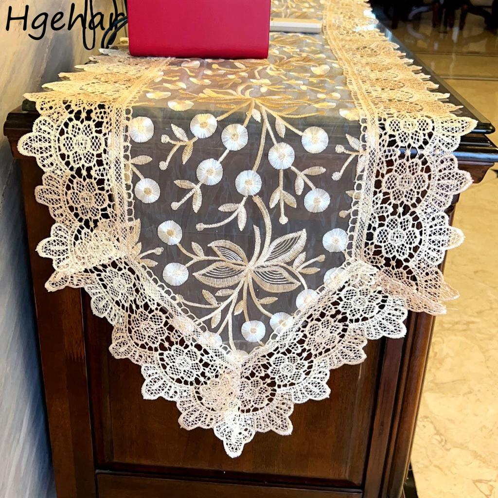 European Style Lace Table Runner Embroidered TV Cabinet Covers Stylish Luxury Home Decoration Wedding Party Long Tablecloth Ins