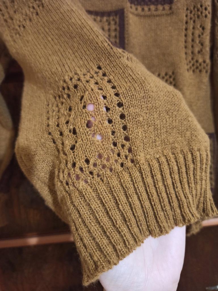 Soft, cozy knitwear, but a bit short; it looks airier in the picture.