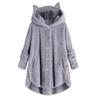 Fleece Women Winter Coat Cute Cats Ears Hooded Spring Fluffy Jacket Irregular Hem Buttons Jacket Oversize Soft Kawaii Plush Coat