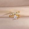 Korea Design Fashion Jewelry 14K Real Gold Plating Multilayer Zircon Ring Elegant Women's Opening Adjustable Ring
