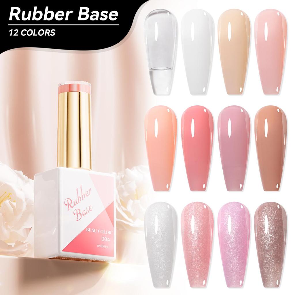 BEAU COLOR 15ml High Toughness 12colors Rubber Base Gel Nail Polish Nude Pink Effect Color Nail Art UV/LED Semi Permanent Gel Polish