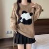 Women's Panda Jacquard Crewneck Sweater for Loose Autumn and Winter Style Slouchy Base Knit Top