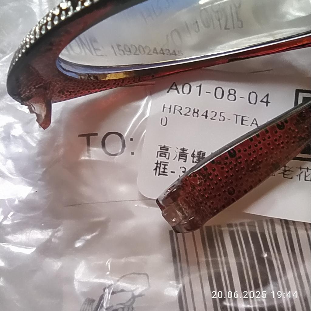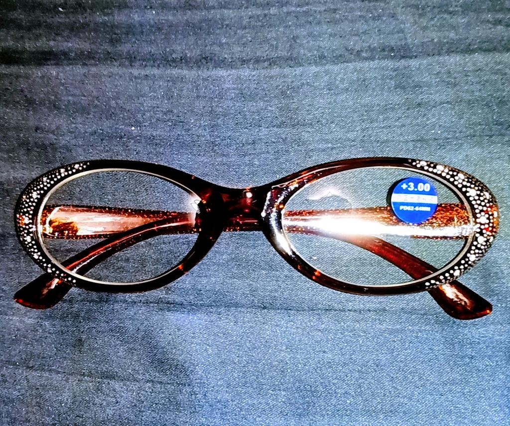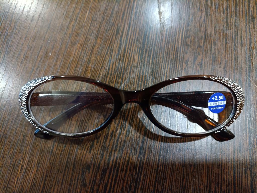 Brown +1.5, poor quality, the frame is a bit crooked and the temples don't open evenly