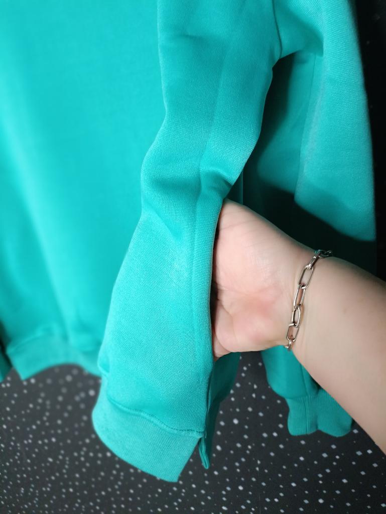 🛍️ Women's Oversized Sweatshirt🛍️ ✨This shirt looks so beautiful and has a special style and it's comfortable on the body and I loved them very much!🤩 ✨The shirt is big and wide with a round neckline, long sleeves with a soft and flexible cuff. The shirt has pockets that I really love ✨Sizes S-XXL can be ordered ✨Suitable for the season: Autumn, Winter ✨I chose size M and in the color lake green I received them exactly in the size and color I wanted. ✨Available in color: orange, white, royal blue, black, lake green, light blue. ✨The product arrived with fast and protected delivery. Was the review helpful to you? Like and follow me for more reviews.