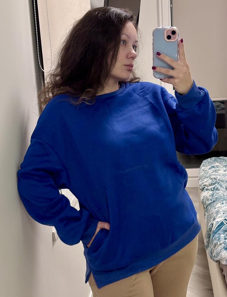 Oversized Autumn Sweatshirt for Women. The shirt is of very high quality! It's very comfortable on the body sits nicely. There is a round neck sweater and long sleeves with cuffs also at the end of the shirt. And pockets on the sides. High-quality shirt highly recommended to buy! The shirt arrived to me with fast and secure delivery 📦