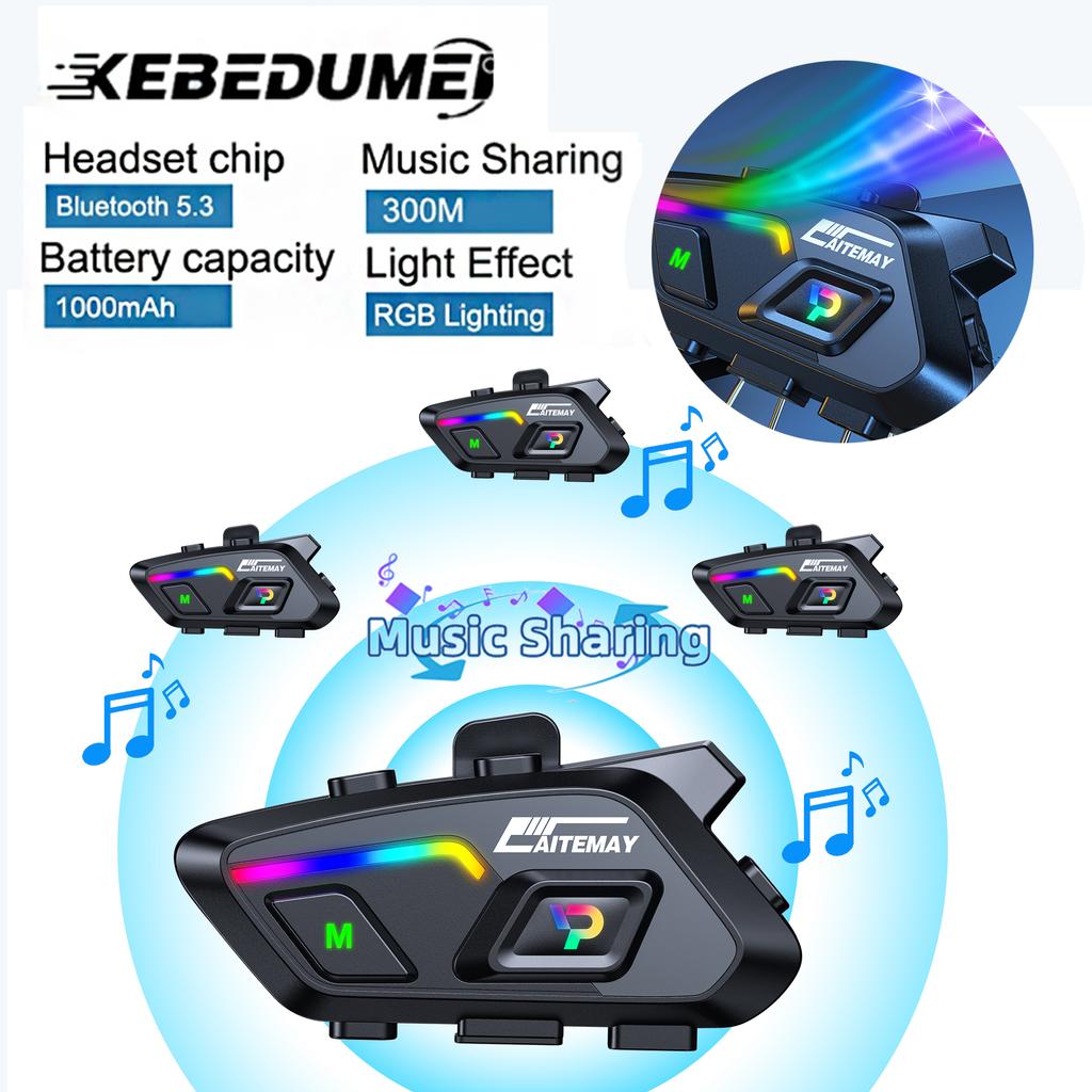 Motorcycle Helmet Headset Stereo Voice Control Bluetooth Hands Free Call IPX7 Waterproof 1000mAh With Ambient Light Music Share