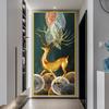 New Chinese Golden Deer Rich Tree Canvas Painting Wall Art Luxury Gold Flowers Posters Prints for Corridor Interior Decor Quadro