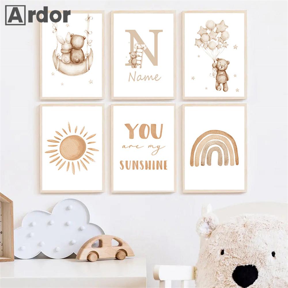 Boho Posters Cartoon Bear Canvas Painting Custom Name Poster Star Rainbow Wall Art Print Nursery Picture Baby Kids Room Decor