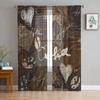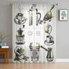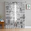 Vintage Text Coffee Tulle Curtains for Living Room Printed Sheer Voile Curtain Bedroom Window Screening Drapes Blinds Home Decor