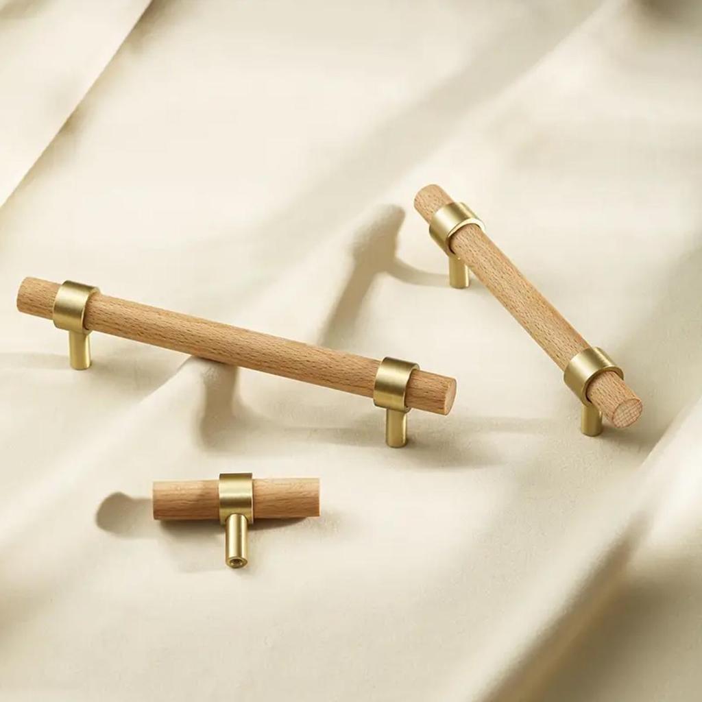 Pure Copper Beech Handle Cabinet Wardrobe Cabinet Long Handle Chinese Log Style Cabinet Door Handle Gold Nordic Simplicity
